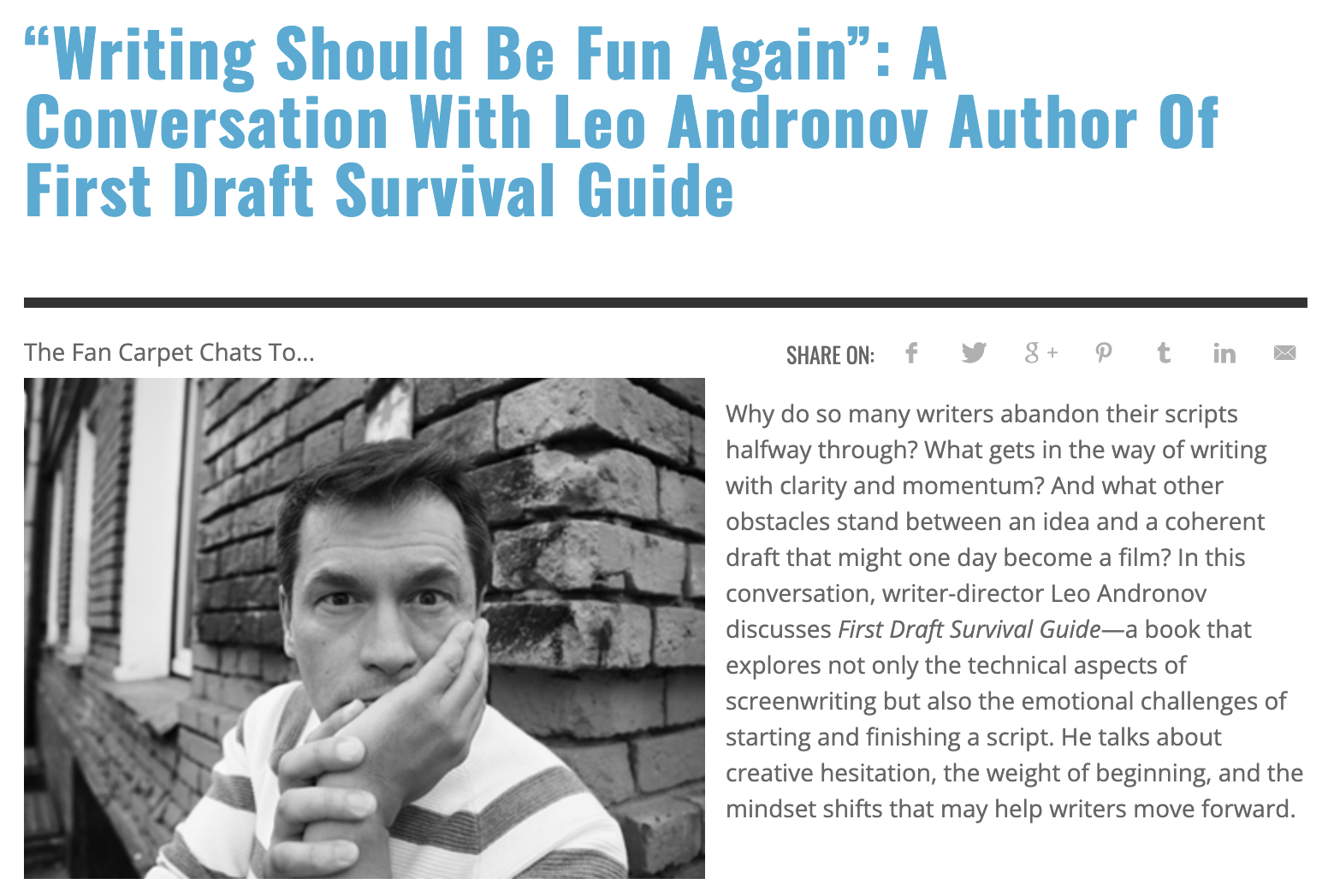 «Работа над сценарием должна приносить радость»: разговор с Лео Андроновым, автором книги First Draft Survival Guide